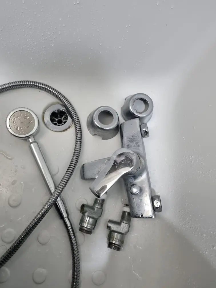 욕조에 달린 샤워기는 물을 뿌려 몸을 씻는 핵심 시설입니다. 오래 쓰다 보면 물줄기가 약해지거나 누수가 생겨 교체가 필요해집니다.